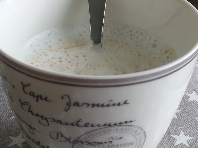 Punaherukoiden kirpeys sopii tähän piirakkaan hienosti. Olen ymmärtänyt ihmisten puheista, etteivät kaikki tahdo keksiä punaherukoille käyttöä. Tähän piirakkaan voi ainakin lämpimästi suositella juuri punaherukoita. Joskus laitan sekaan myös mustikoita. Maistuu varmaan hyvälle muistakin marjoista tehtynä!Sitten kupillinen lattea seuraksi...