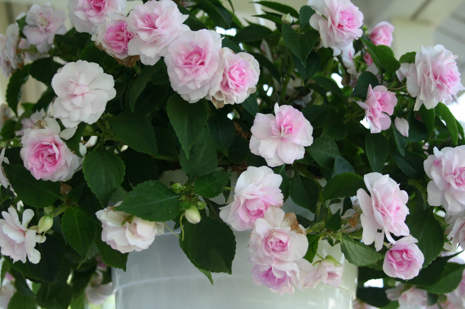 Väreissä on nyt fuksiaa, sinistä ja lilaa vaaleanpunaisen ja valkoisen lisäksi. Aikaisemmin olen muuten perennoissakin pysytellyt valko-vaaleanpunaisella linjalla, mutta tänä kesä perennapenkkeihinkin on tullut lisää väriä. Niistä joskus myöhemmin...